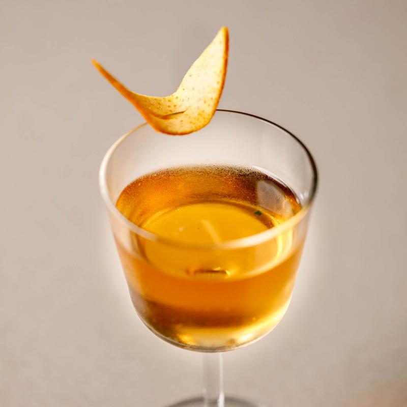 • Made With: monkey shoulder whiskey, rhubarb amaro, amontillado sherry, clove syrup